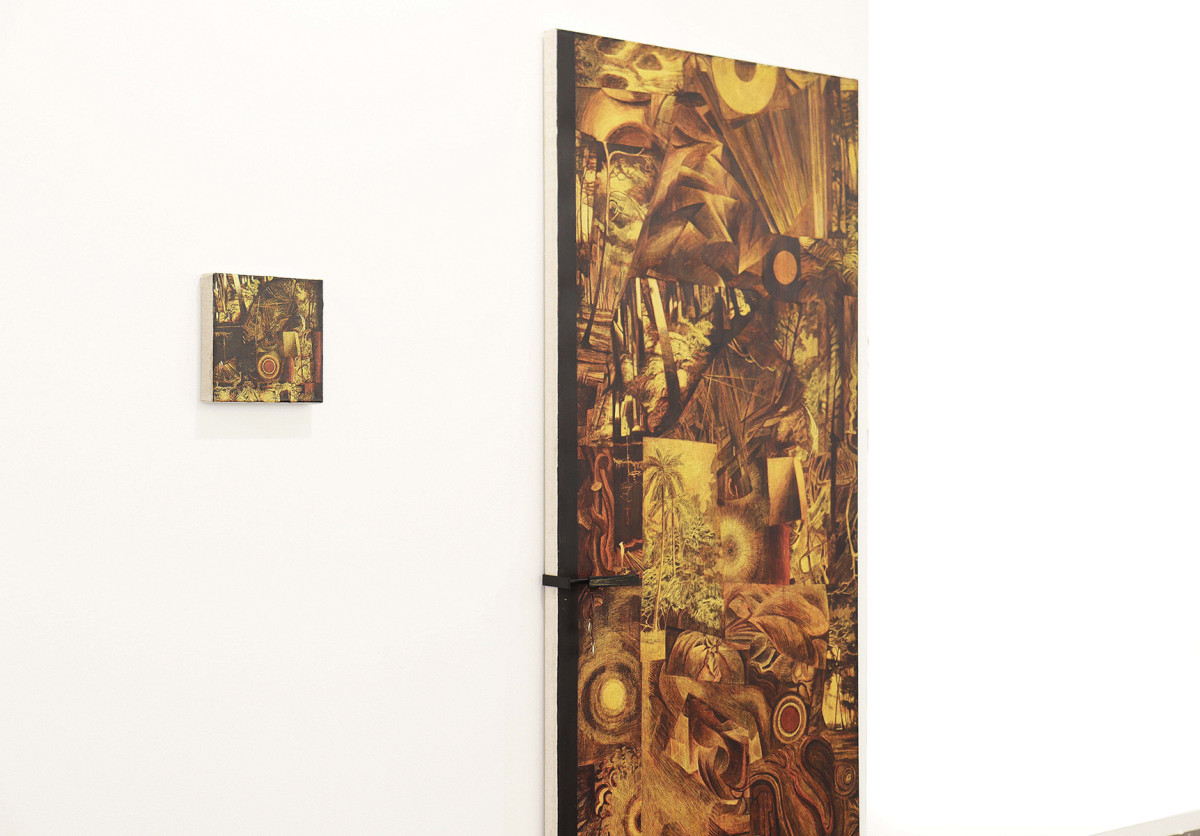 Por su parte, Matías Ercole presenta una instalación de dibujo en tinta y cera, con una pieza central que deviene puerta en el stand habilitada a su uso. El proyecto es parte de su actual línea de trabajo e investigación en torno a la luz como fenómeno físico pero también como personaje y símbolo, en relación a la historia y las diferentes geografías. En esta ocasión la imagen del sol es la protagonista.